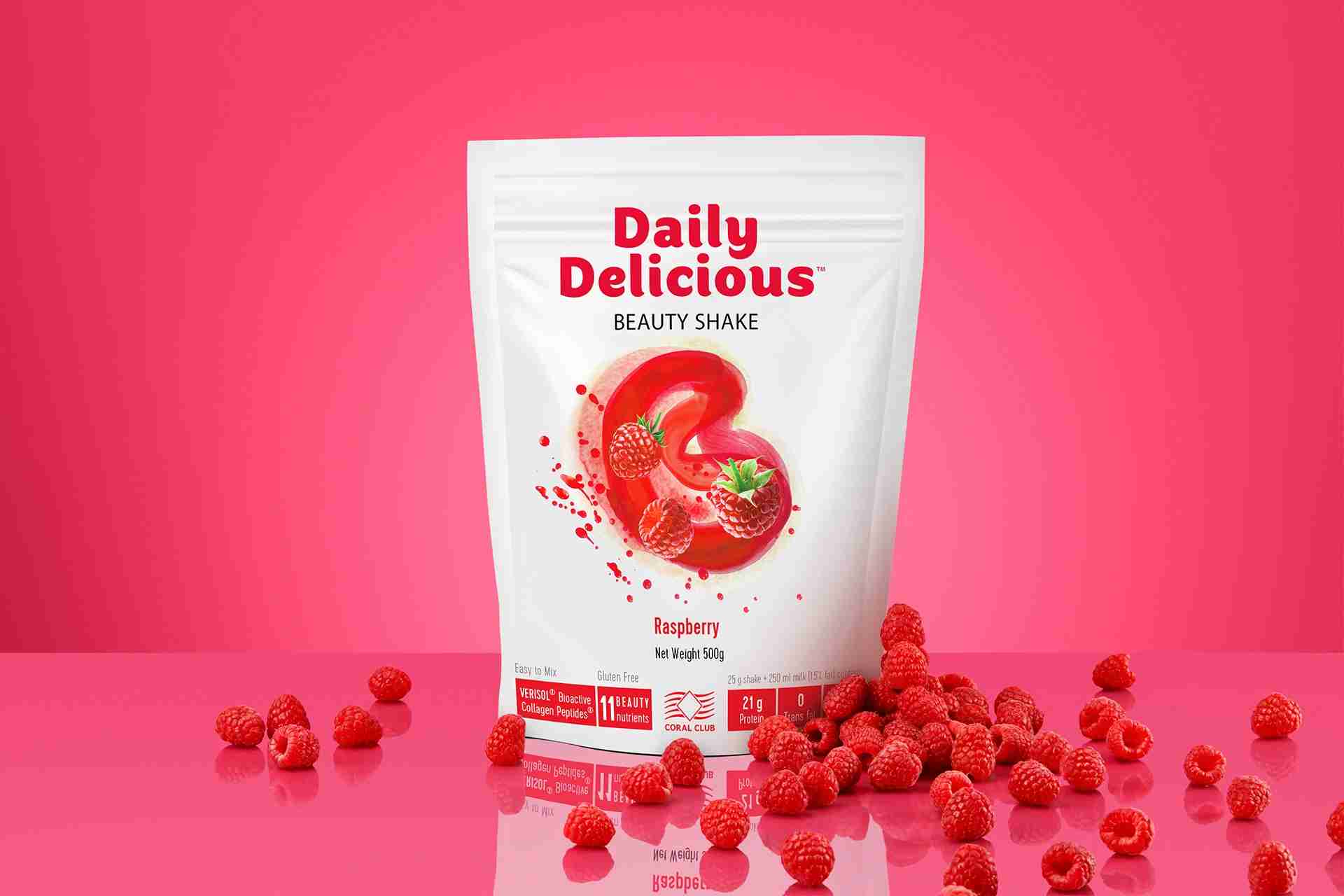 დეილი დელიშეს ბიუთი შეიკი ჟოლო, 500 გ / 20 პორცია